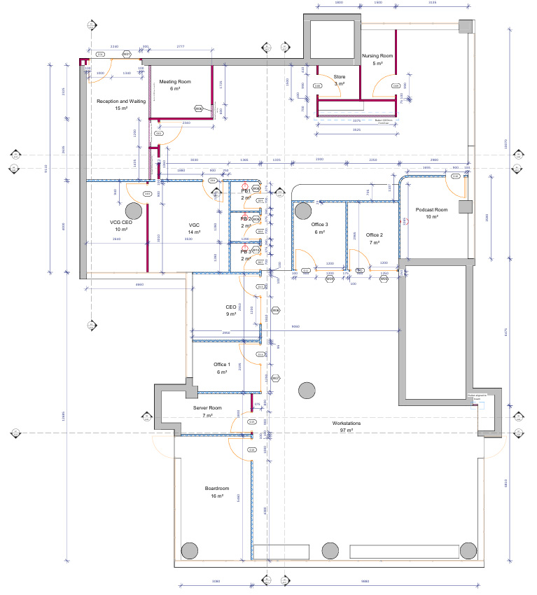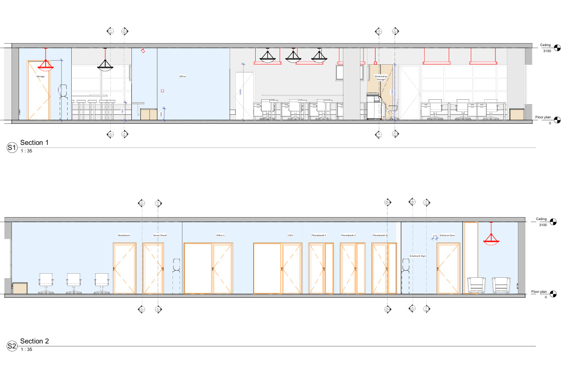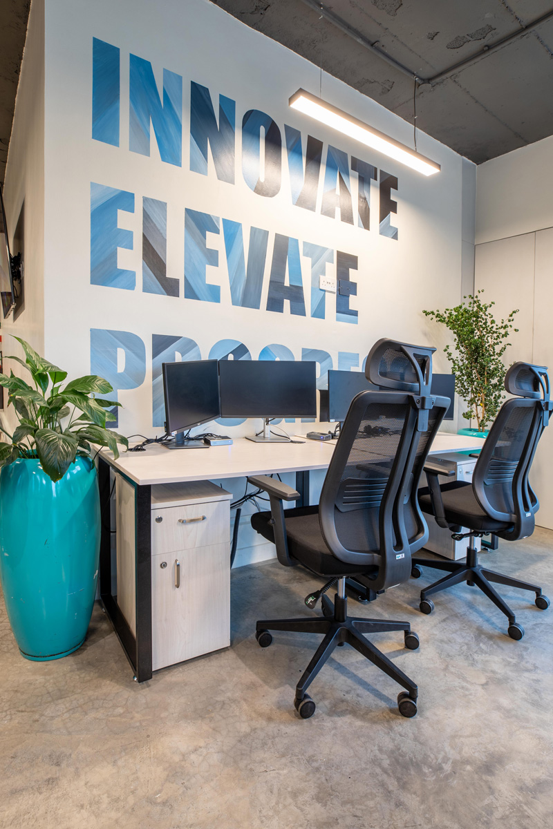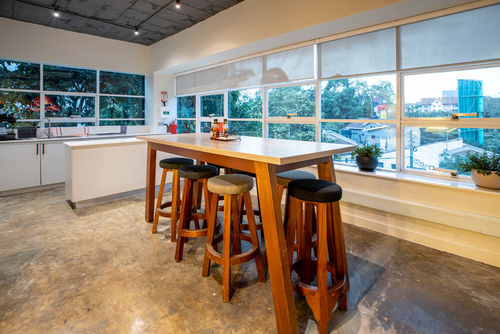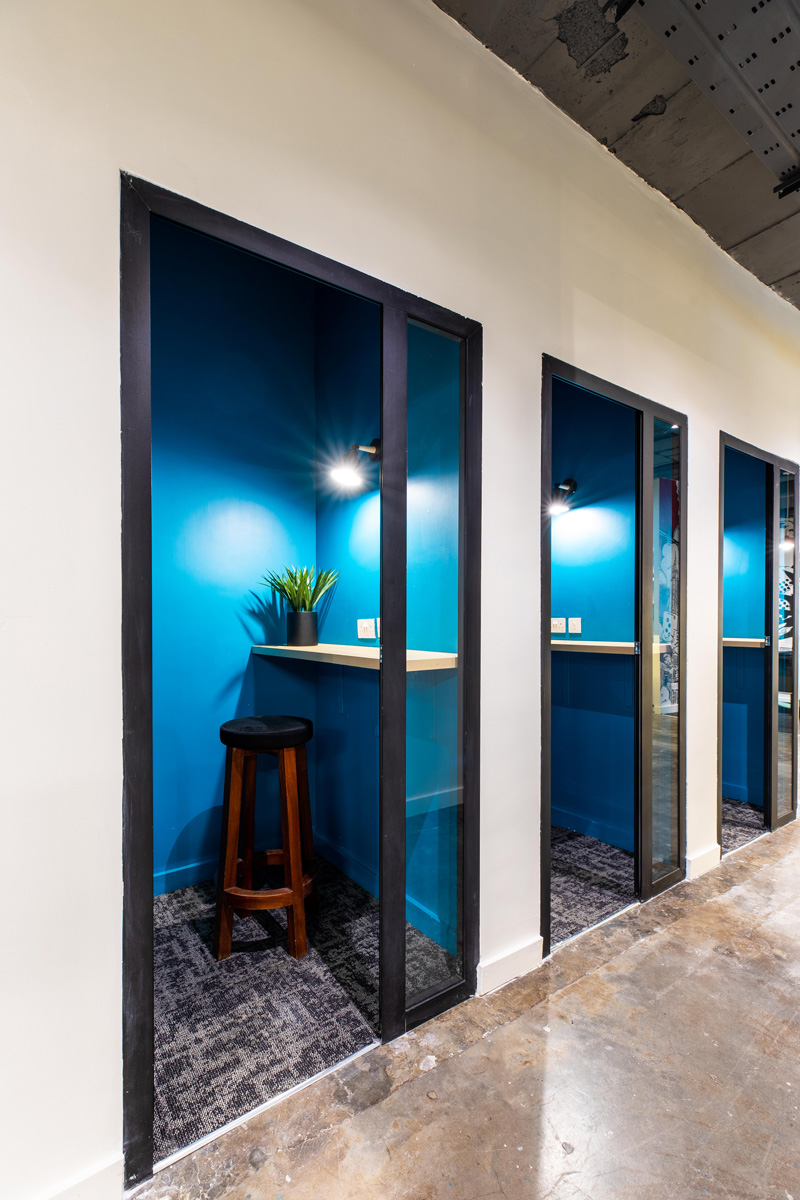 As a testament to cost-effectiveness and sustainable design, all possible measures were taken to effectively utilize existing glass partitions and doors, seamlessly aligning with the new industrial look.
