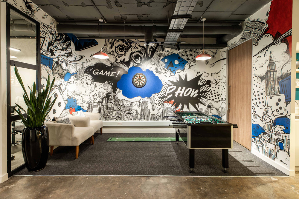 At the center of this plan is a play and breakout area. Equipped with a mini-golf station and a foosball game, this place is truly a social hotspot and a great example of how work and play can seamlessly come together.
